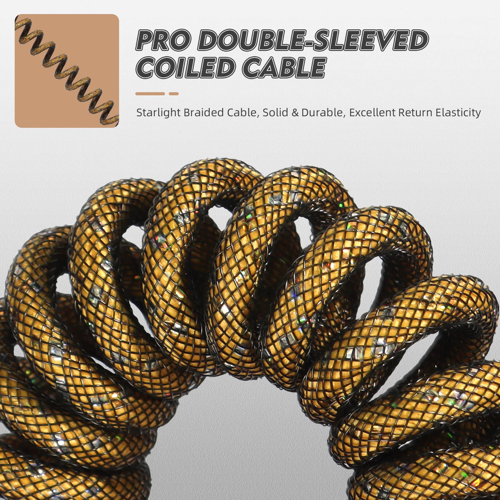 ATTACK SHARK Custom Coiled USB C to A Cable for Gaming Keyboard,Double-Sleeved Starlight Braided Cable with Detachable Metal Aviator 24K Gold Connector 1.7M-2.2M for Phone/PS4/Android/Xbox-Gold