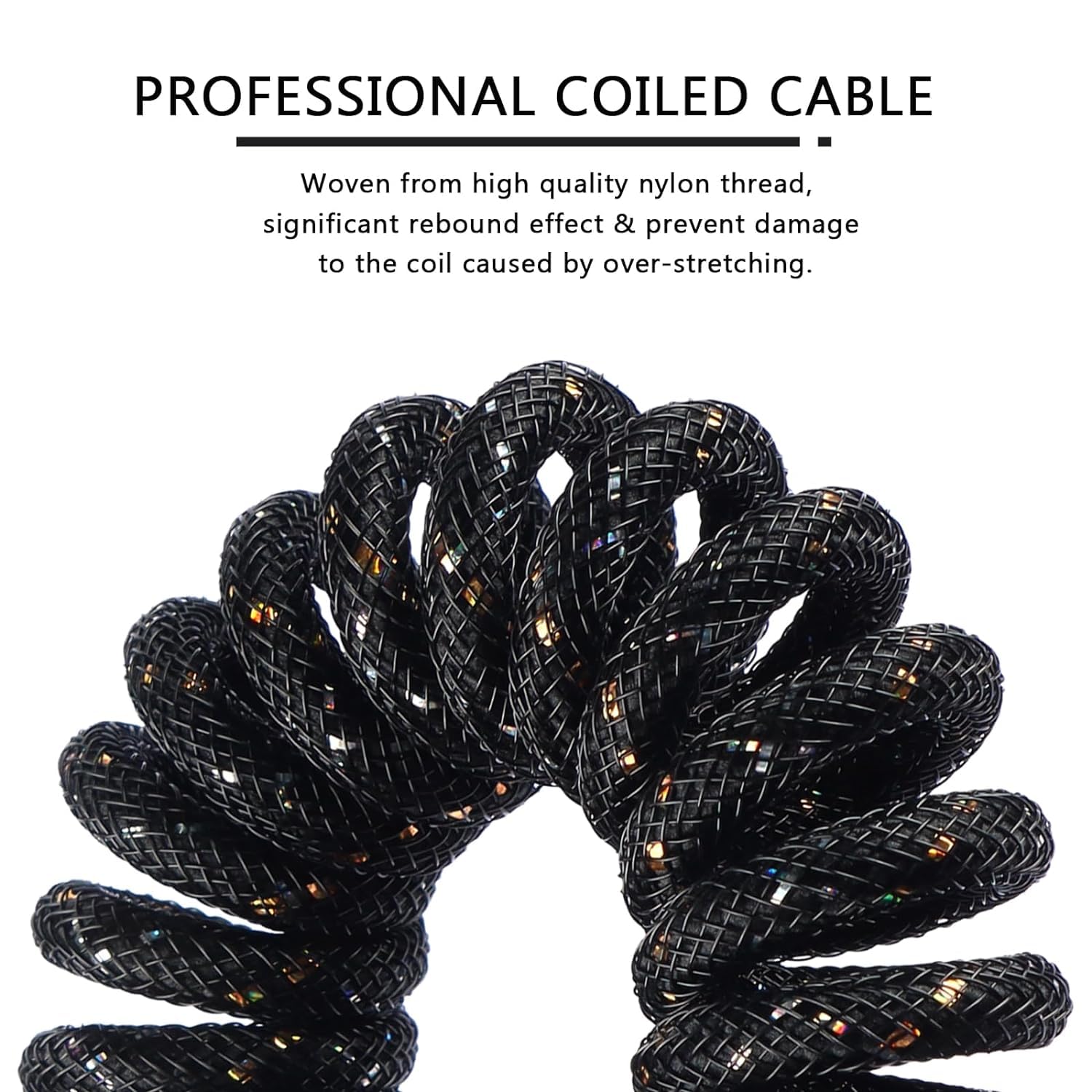 ATTACK SHARK Custom Coiled USB C to A Cable for Gaming Keyboard,Double-Sleeved Starlight Braided Cable with Detachable Metal Aviator 24K Gold Connector 1.7M-2.2M for Phone/PS4/Android/Xbox (Black)