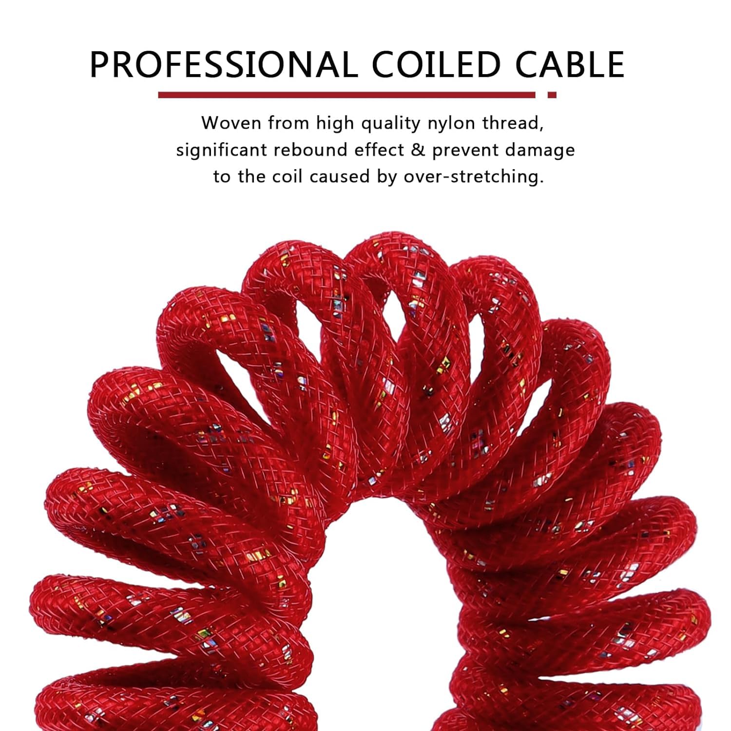 ATTACK SHARK Custom Coiled USB C to A Cable for Gaming Keyboard,Double-Sleeved Starlight Braided Cable with Detachable Metal Aviator 24K Gold Connector 1.7M-2.2M for Phone/PS4/Android/Xbox-(Red)