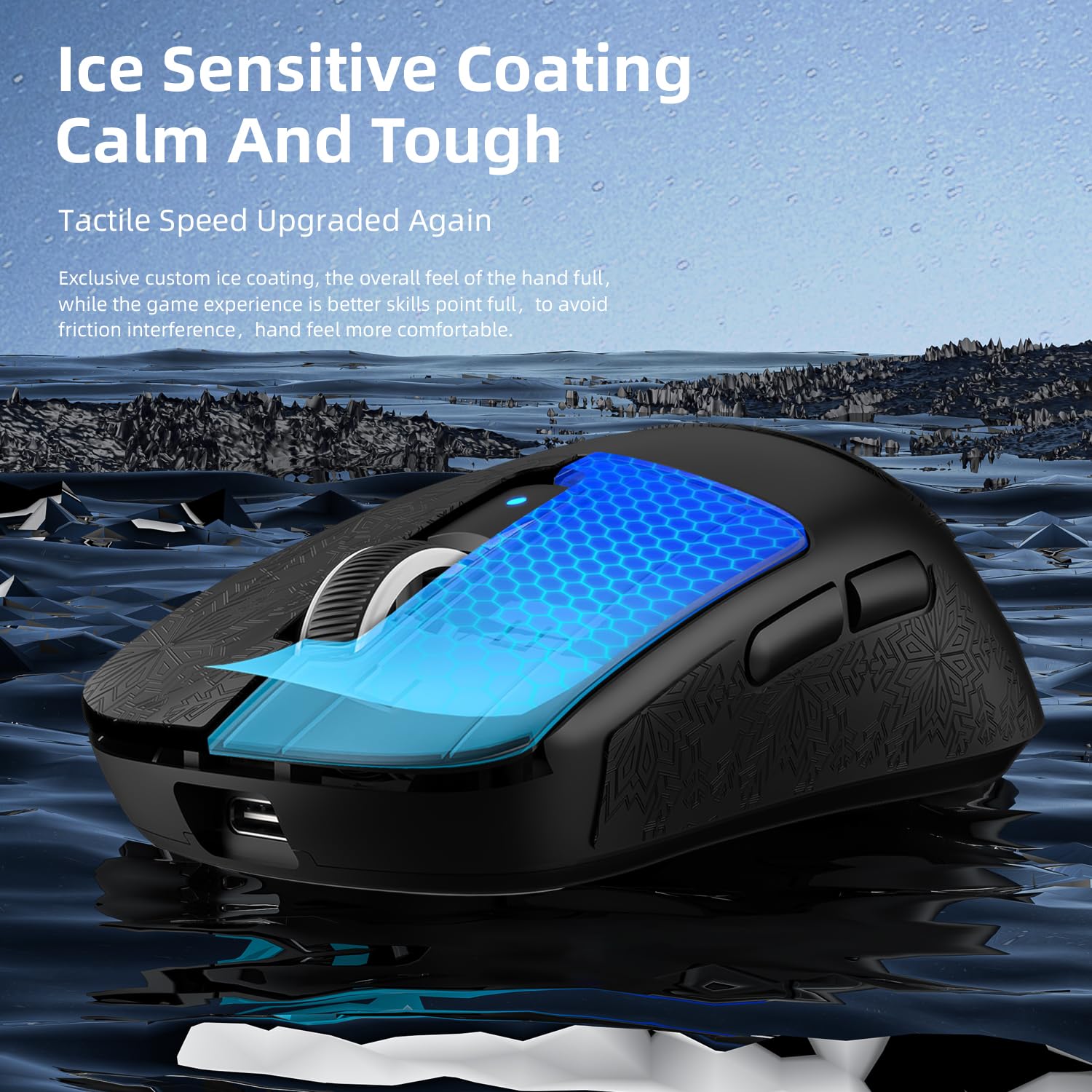 - ă38g ULTRA-LIGHTWEIGHT & NATIVE ICE SENSTIVE COATINGăThrough meticulous engineering,the Bluetooth mouse weighs only 38 grams,which lighter than the ATTACK SHARK X3ïŒATTACK SHARK X6.This computer mice features a native ice sens coating that is exclusively customized for a fuller grip, preventing friction interference and ensuring a more refreshing feel. The ergonomic gaming mouse also designed for small to medium hand grip and compatible with medium-large finger grips.The overall design prioritizes comfort and ease of gaming and working.