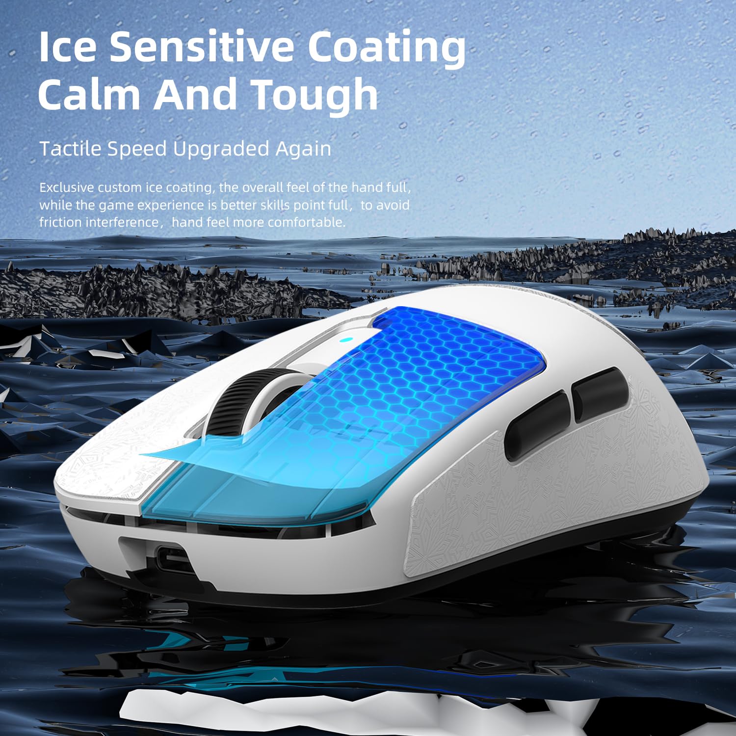 - ă38g ULTRA-LIGHTWEIGHT & NATIVE ICE SENSTIVE COATINGăThrough meticulous engineering,the Bluetooth mouse weighs only 38 grams,which lighter than the ATTACK SHARK X3,ATTACK SHARK X6.This computer mice features a native ice sens coating that is exclusively customized for a fuller grip, preventing friction interference and ensuring a more refreshing feel. The ergonomic gaming mouse also designed for small to medium hand grip and compatible with medium-large finger grips.The overall design prioritizes comfort and ease of gaming and working.